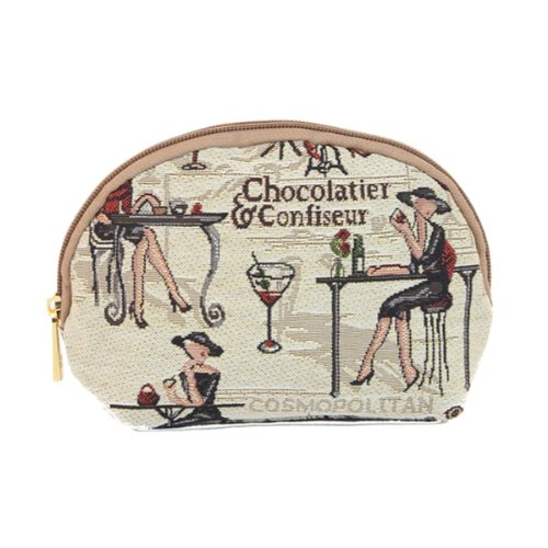It's a reflection of cosmopolitan living, where life isn't always about work and high impact. So take time out, sit down, enjoy a coffee and watch the world fly by. This beautiful tapestry cosmetic bag depicting the highs of modern living, a chic style of emphatic life, the flirtatious coffee house rendezvous. Coffee, tea or me?