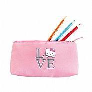 Pink pencil case with Hello Kitty® design. Microfibre with PVC backing and polyester lining. Size approx. 21cm x 11cm x 3cm. Contents not included.