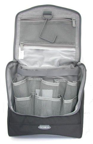 To use, just open and hang on the door, shower rod or towel bar. With a spacious zippered main compartment with 6 divided pockets for full size bottles, this really is the answer for all your travel needs.