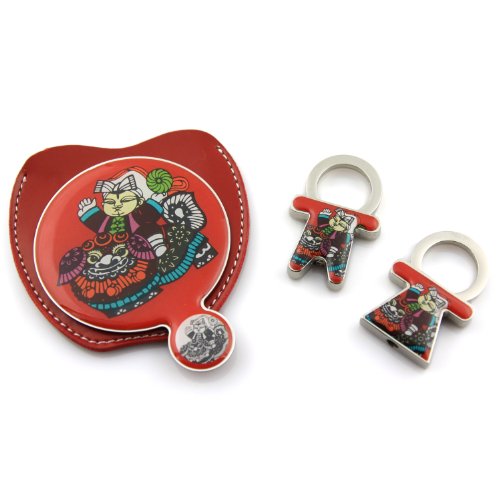 Colorful Chinese Pichu New Year On Red Soft Case Pocket Mirror With His and Hers Zipper Charm Key Chain Soft Décor Bag Lock