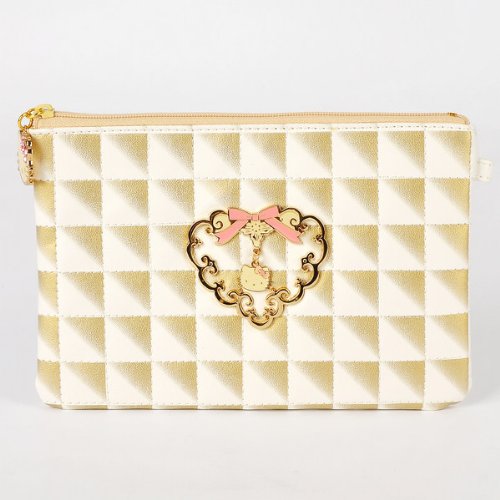 Hello Kitty Flat Cosmetic Case Makeup Bag Gold