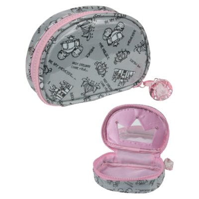 Kingsley Travel/Cosmetic Bag, Oval Case with Mirror, Grey/Pink Princess Pattern