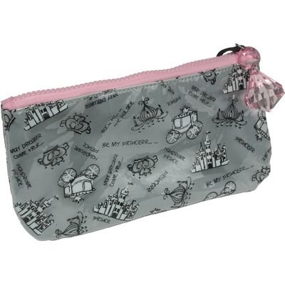 Kingsley Travel/Cosmetic Bag, Pencil Case, Zip Top, Grey/Pink Princess Pattern