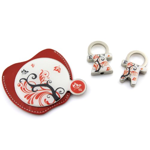 Smoky Grey And Ruby Red Fern Filigree Flying Butterfly Soft Case Pocket Mirror With His and Hers Zipper Charm Key Chain Soft Décor Bag Lock