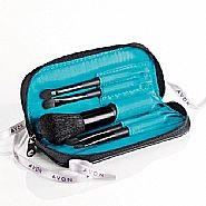 Avon STYLE Black and Teal MAKE UP BRUSH SET of 5 Brushes in Stylish Zipped Case - for Pro-Perfect Application